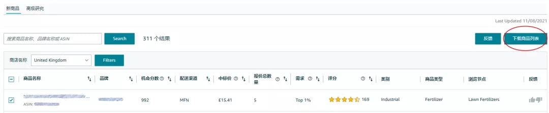 卖家在“新商品”功能下,还可以通过搜索、筛选、下载来获取自己想要的选品推荐: