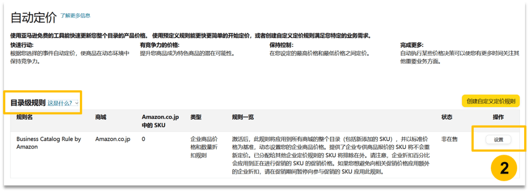 1)在卖家平台中,前往“确定价格”,选择“自动定价”,点击“创建自定义定价规则”